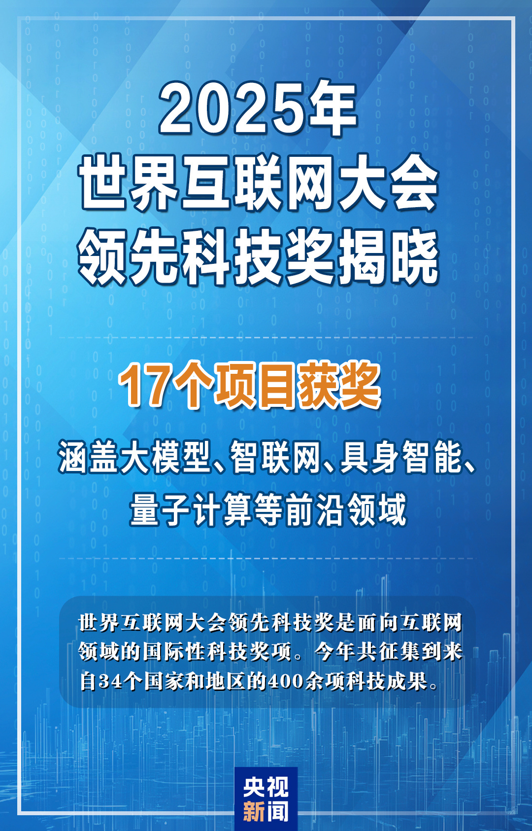 2025年世界互联网大会领先科技奖颁奖典礼11月6日在浙江乌镇举行。17个具有国际代表性的项目获奖,涵盖大模型、智联网、具身智能、量子计算等前沿领域。