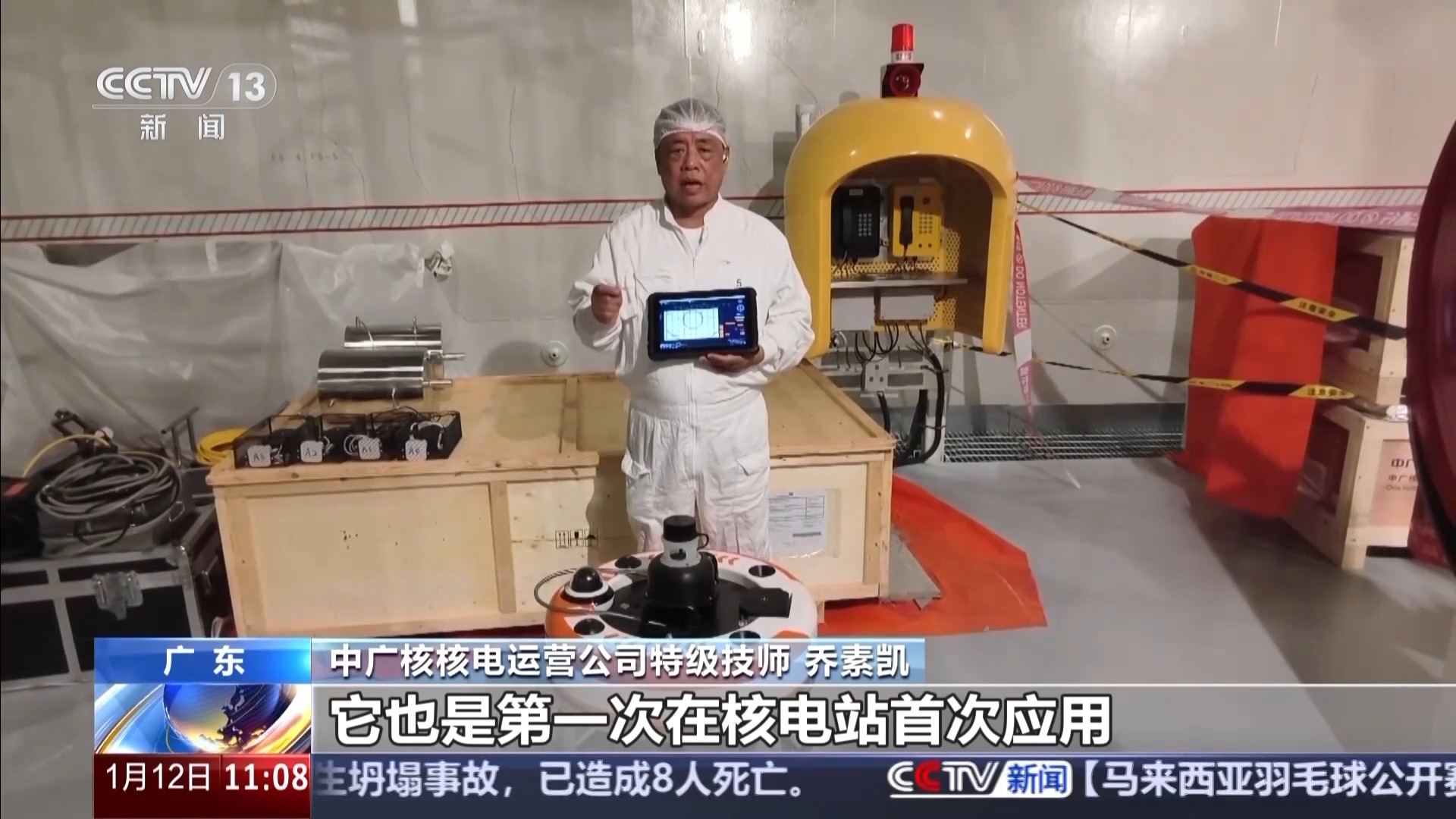 中广核核电运营公司特级技师 乔素凯:它配备了三维导航系统,具有高精度定位、巡航和前行功能,还具备一键返航和自动避障功能。它的水上水下摄像机为我们的核燃料操作员提供了另外一双水下的眼睛,确保核燃料操作万无一失。