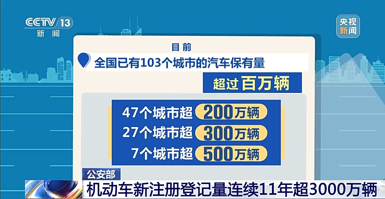 记者今天从公安部获悉,据统计,2025年全国机动车保有量达4.69亿辆,机动车驾驶人数量达5.59亿人,机动车新注册登记量连续11年超过3000万辆。