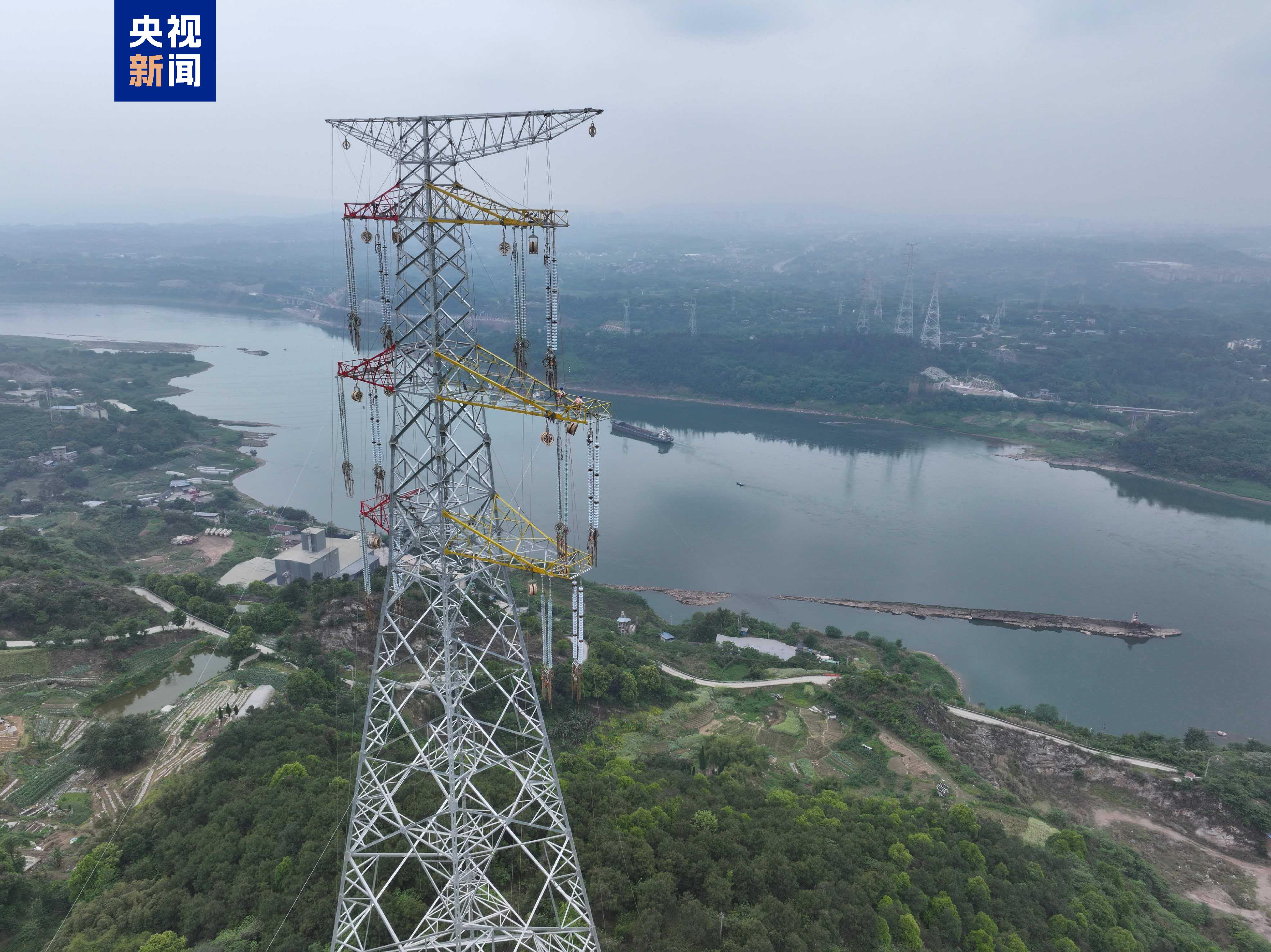 4月11日,重庆巴南新玉500千伏输变电工程跨长江放线作业现场,国网重庆电力首次创新应用大载重无人机搭载四段投掷器,牵拉着导引绳顺利跨越长江。