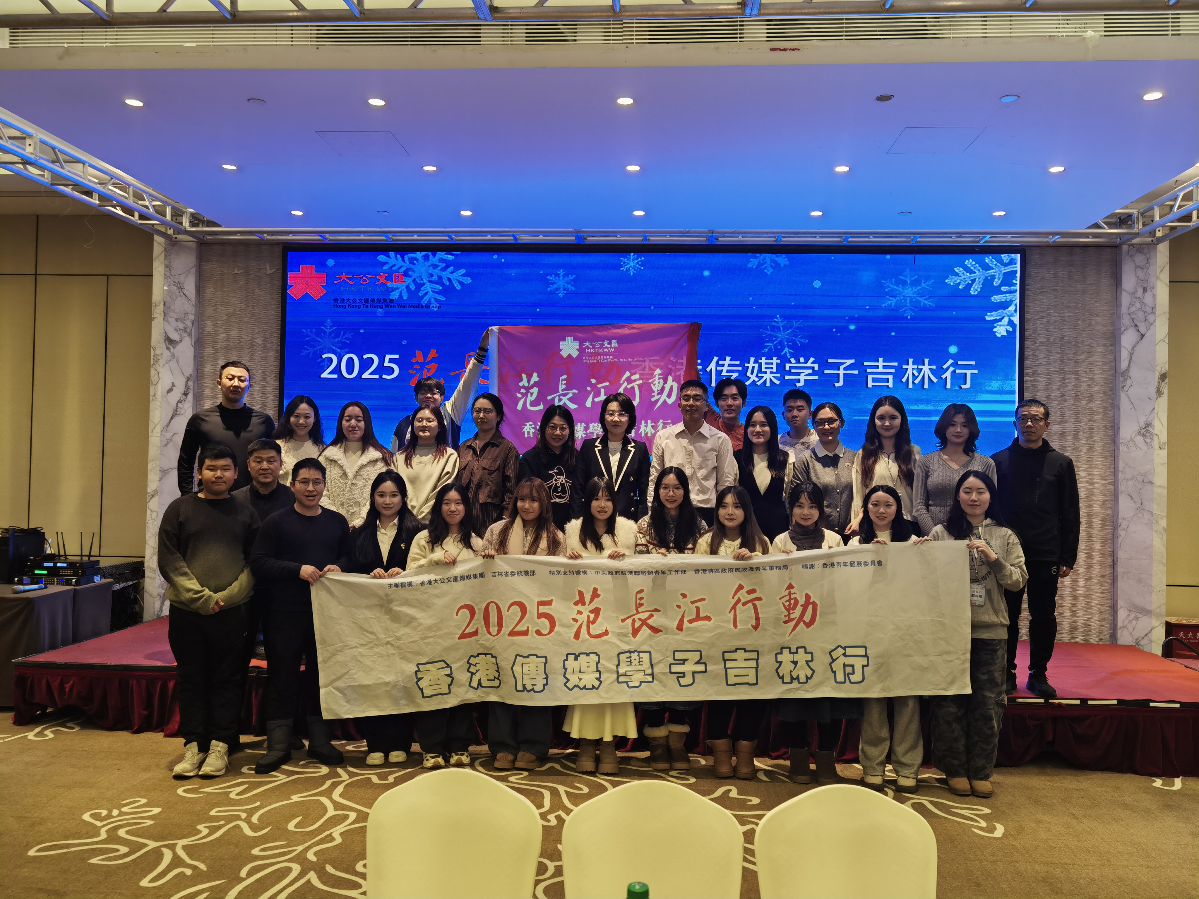 12月24日,为期5天的“2025范长江行动——香港传媒学子吉林行”活动圆满落幕。本次活动由香港大公文汇传媒集团与省委统战部联合主办,来自香港中文大学、香港教育大学、香港理工大学等高校的10余名传媒学子走进长春、吉林两市。吉林大学学生志愿者全程陪同,吉港两地高校学生深入交流、同行互动。