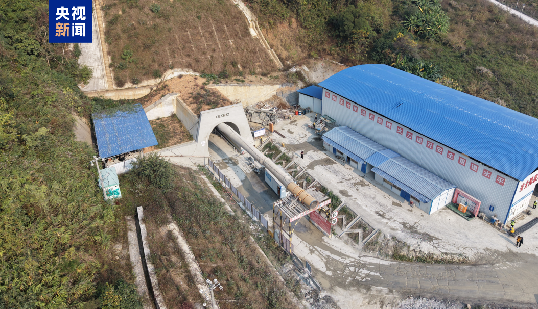 1月16日,在广西百色市右江区的新建黄桶至百色铁路建设现场,挖掘机铲斗将鼓楼隧道掌子面最后一层岩土打通,标志着黄百铁路全线首座1000米以上的中长隧道顺利贯通。