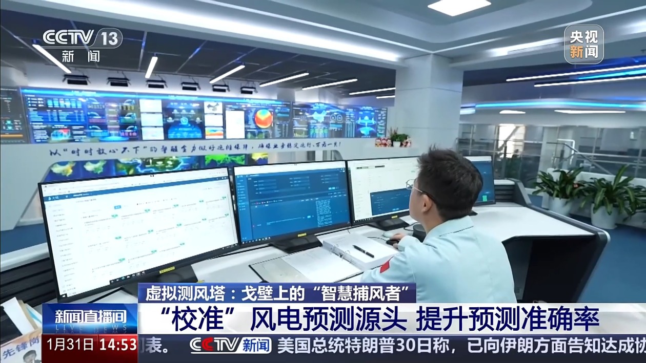 国家气象信息中心数据应用室能源气象服务组成员 邱钜燎:这套虚拟测风塔技术,融合了气象卫星遥感、地面雷达监测与数值模型算法,通过激光雷达探测风速、风向等有关参数,生成高精度网格化风场数据。相当于绘制了一幅完整的风资源的“全息地图”。这些数据为增加发电量提供有效的气象依据。我们整体服务的核心价值,在于打通气象与能源数据壁垒,通过数据融合提升风电功率预测精度,为整体的电网稳定运行提供了有效的技术支撑。