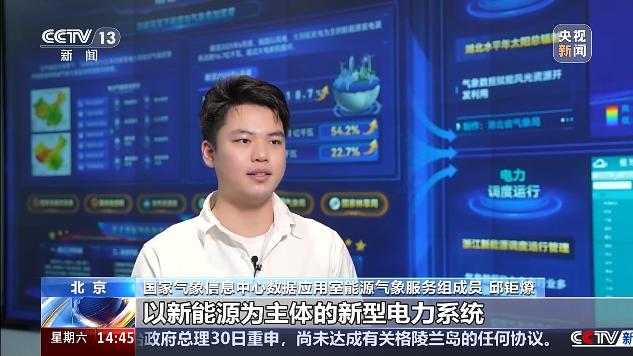 国家气象信息中心数据应用室能源气象服务组成员 邱钜燎:在气候变化的背景下,以新能源为主体的新型电力系统对气候资源评估预报和极端气象灾害的监测预警更加依赖。我们希望通过将气象数据与能源、电力行业应用进行深度融合,在能源调度、电场运维等方面发挥积极作用,希望能够有效支持能源行业的降本增效。
