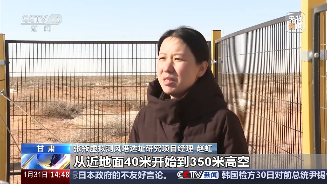 张掖虚拟测风塔选址研究项目经理 赵虹:它就跟物理测风塔的效果是一样的,从近地面40米开始到350米高空,可以设置24个不同的层高,都可以采集到不同层高的风速和风向,它测的层次要比物理测风塔更丰富一些。