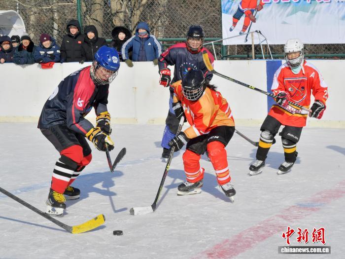 2月6日,吉林长春,一群老少冰球爱好者同场竞技。 张瑶 摄