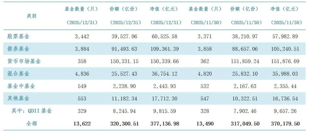 中国基金业协会最新发布的数据显示,截至2025年12月底,我国境内公募基金资产净值合计37.71万亿元。