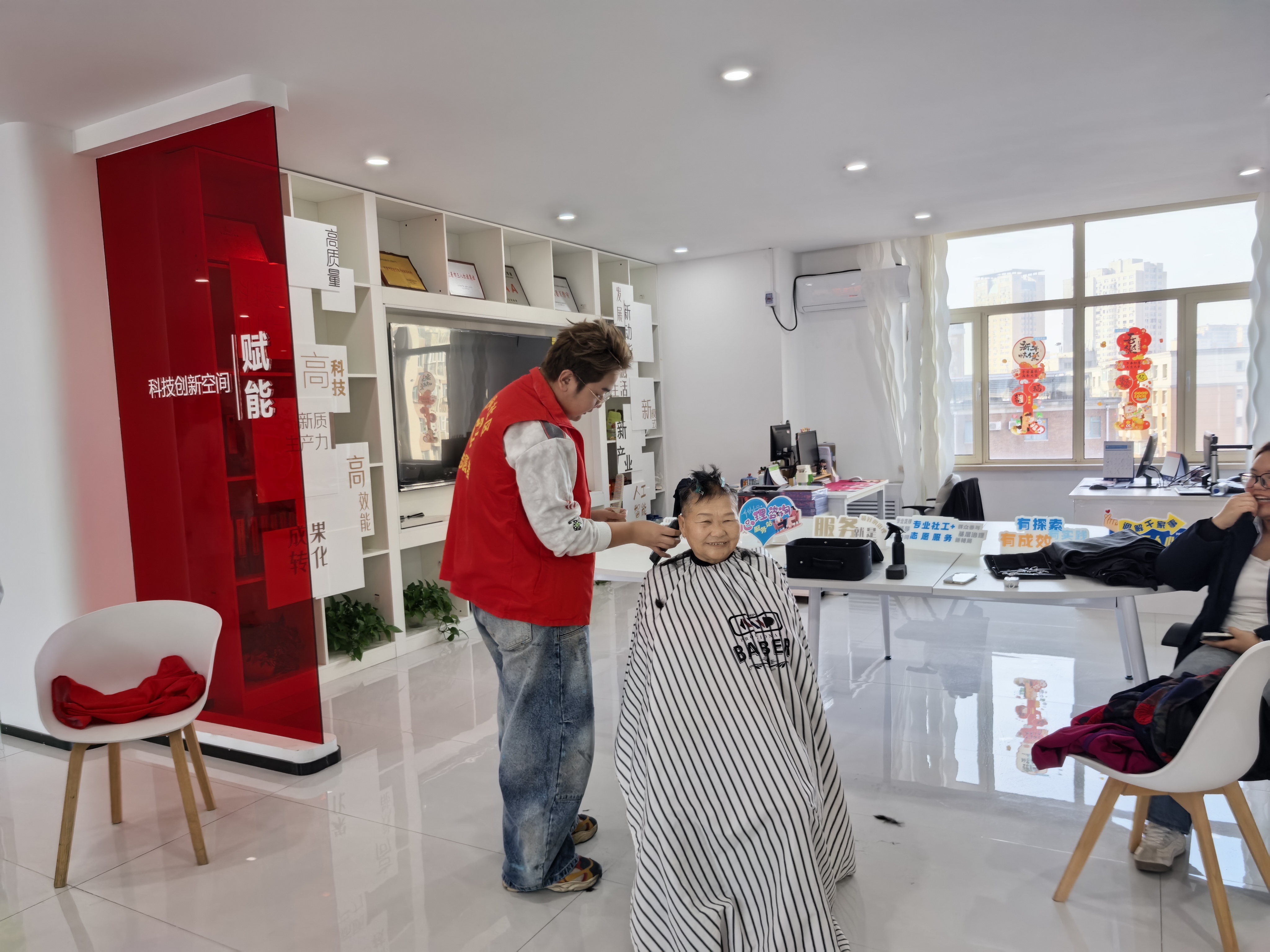 服务进社区,精准对接民生需求。在九圣祠社区,各类“小而专”“小而实”的志愿服务活动丰富多彩,贴近民心。长春中医药大学附属医院的青年志愿者服务队为社区居民提供血压测量、健康体检、中医问诊等健康服务,细致解答居民的就诊咨询;长春市蓝梦职业培训学校的美发师现场开展义剪,解决居民的“头”等大事;针对社区居民的民生保障、权益维护及新就业群体在交通事故处理、劳动权益保障等方面的问题,长春市律师行业团委的青年律师志愿者开设“法律门诊”,提供一对一专业指导。此外,长春中医药大学的青年志愿者积极参与社区环境卫生整治工作,美化共同的生活家园。