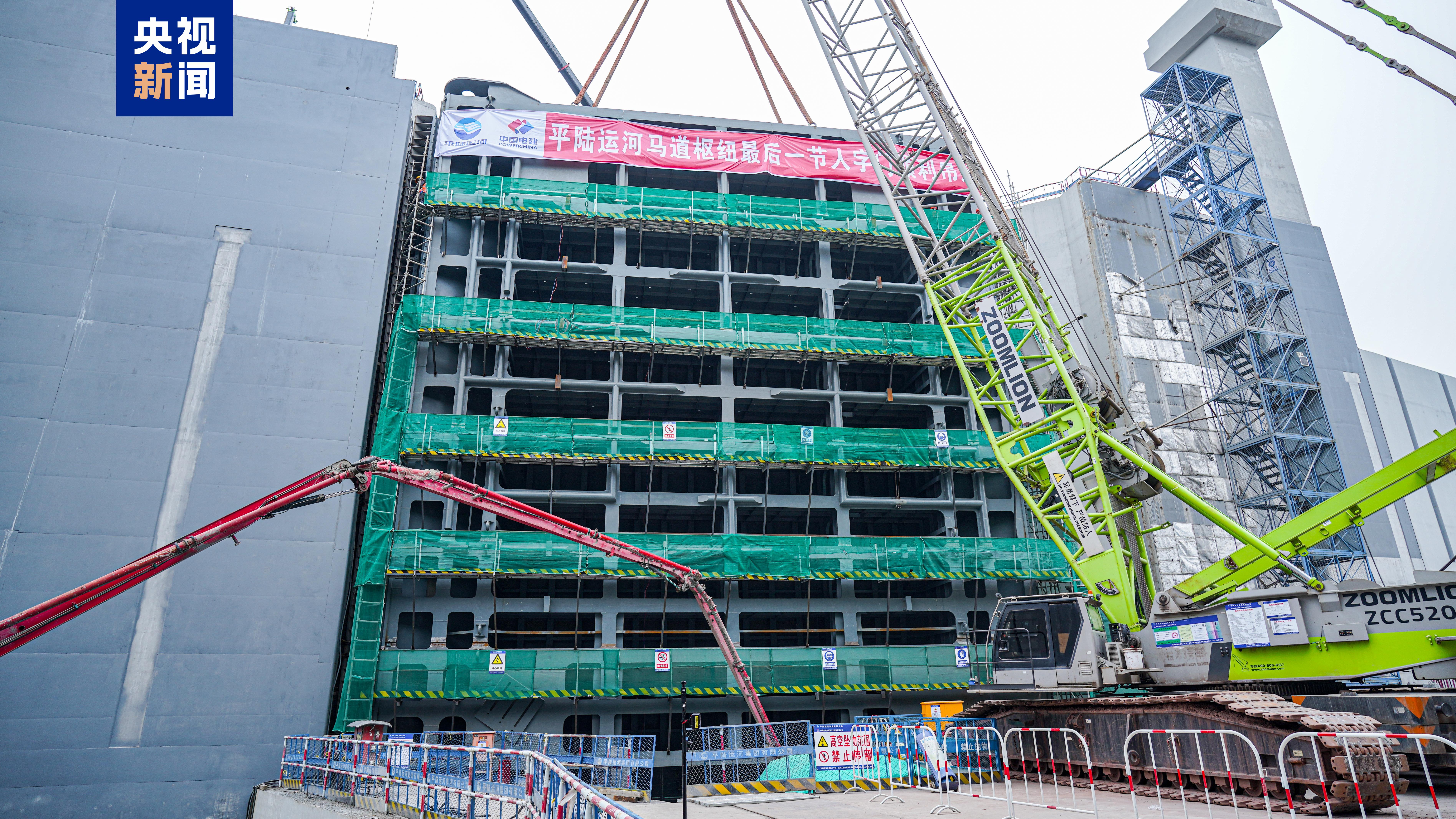 近日,平陆运河马道枢纽上闸首左线最后一节人字门精准吊装落位,标志着平陆运河枢纽工程船闸人字门吊装工作全部完成,全面转入人字门附件及机电设备安装新阶段,为有序推进无水调试、有水调试奠定坚实基础。