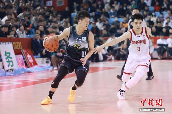 3月15日晚,吉林长春,吉林队姜伟泽(左一)持球进攻。